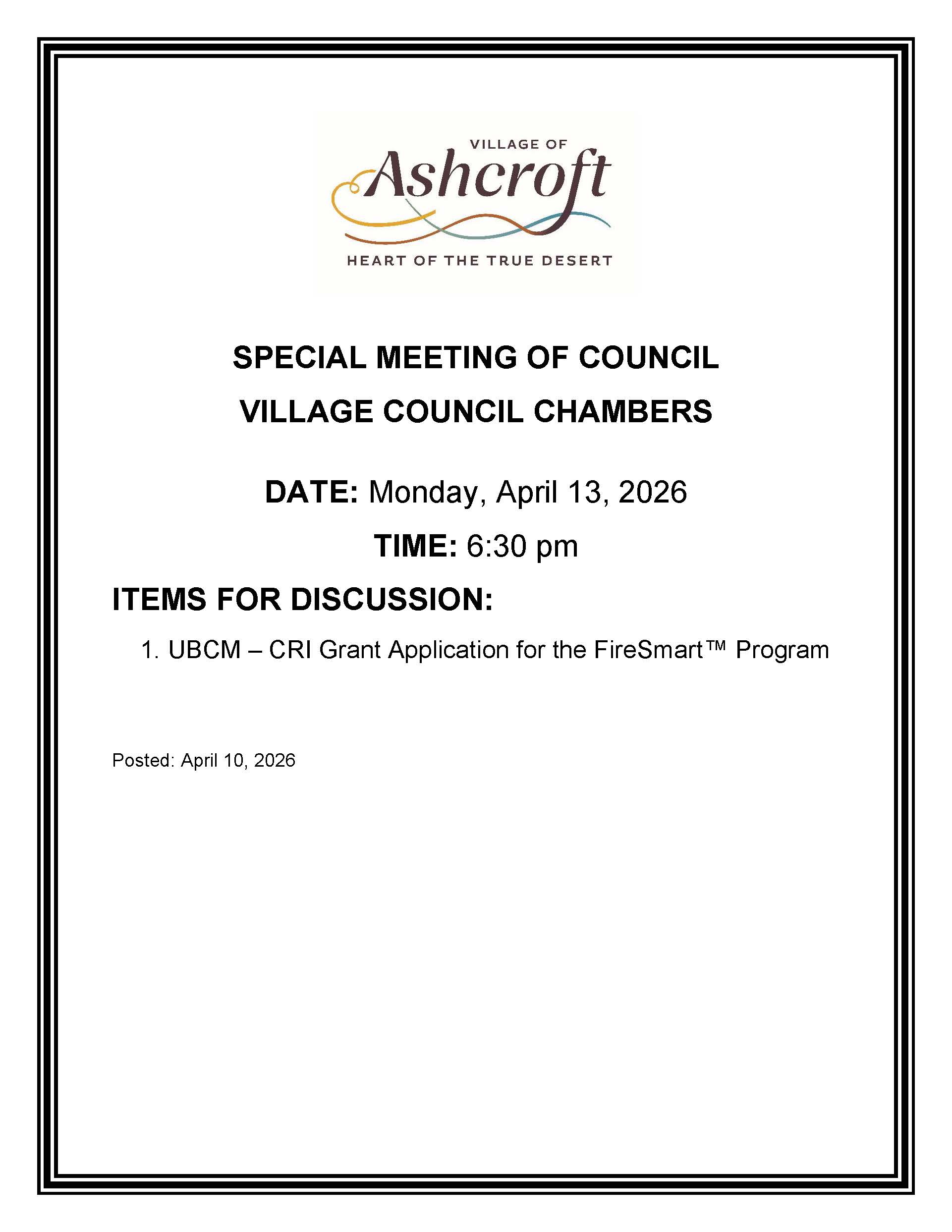 2026 04 13 Special Meeting Notice