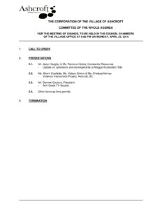 Committee of the Whole Agenda April 25 2016