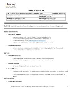 2025 Legacy Park Booking Deposit and Cancellation Policy