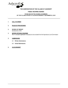 Public Hearing Agenda November 22 2021 ALC Exclusion