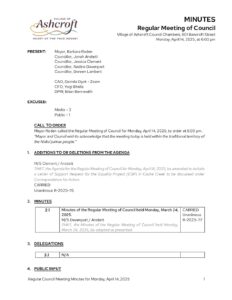 Download Preview File Type: pdf File Size: 179 KB Categories: Council Meetings, Minutes, Regular Meeting