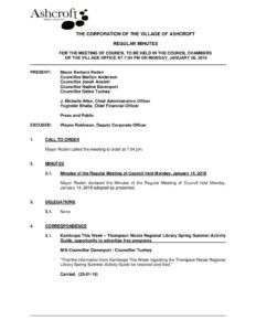 Categories: Council Meetings, Minutes, Regular Meeting