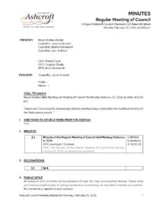 Regular Meeting Minutes February 23, 2026