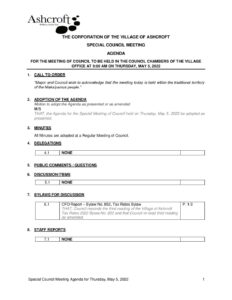 Download Preview File Type: pdf File Size: 579 KB Categories: Agenda, Council Meetings, Special Meeting