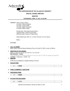 Download Preview File Type: pdf File Size: 316 KB Categories: Council Meetings, Minutes, Special Meeting