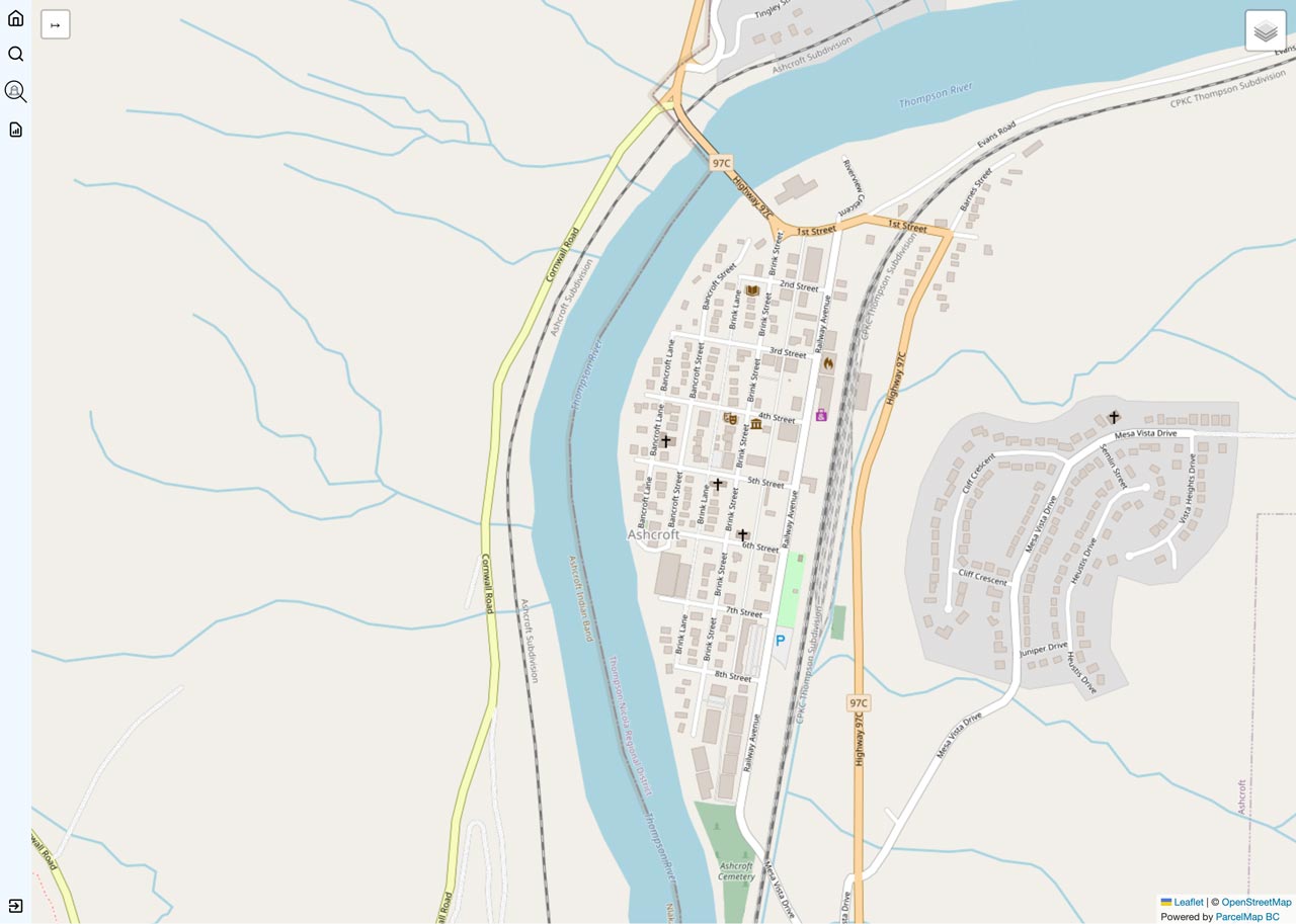 This interactive Walking Tour Map & Ashcroft Trail map has been created to help direct visitors to the various locations. The specific walking tours and trails can be selected from the menu on the left corner. Once tours and trails are displayed, icons can be clicked to see photos. Clicking on the photos allows you to view full sized images.